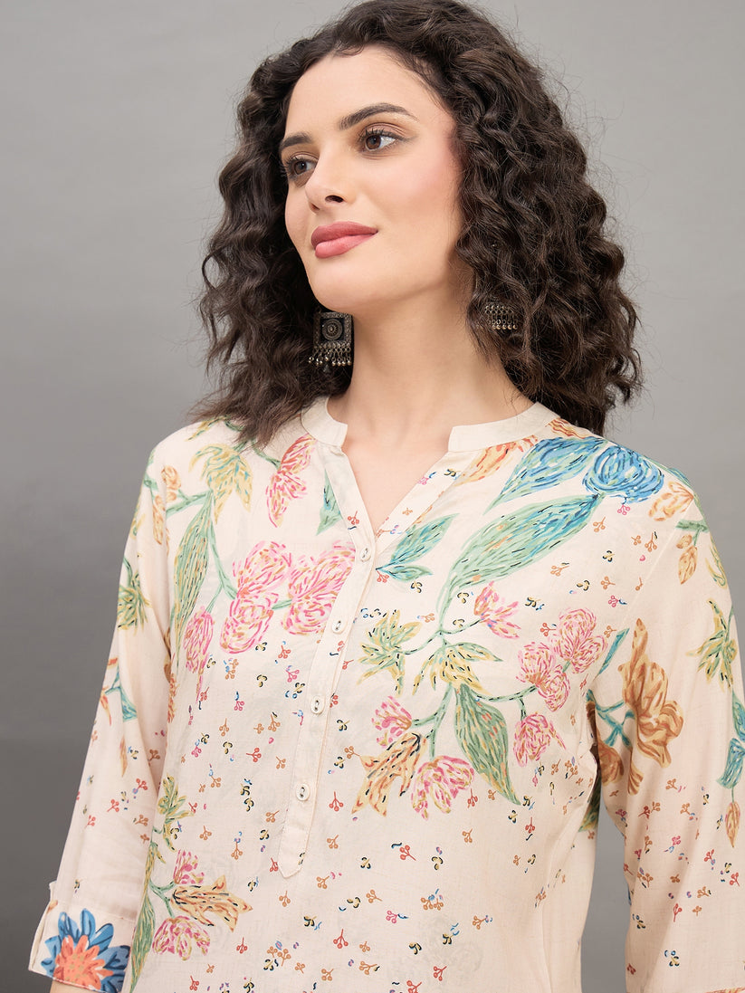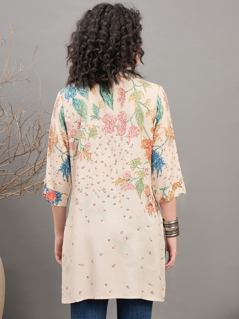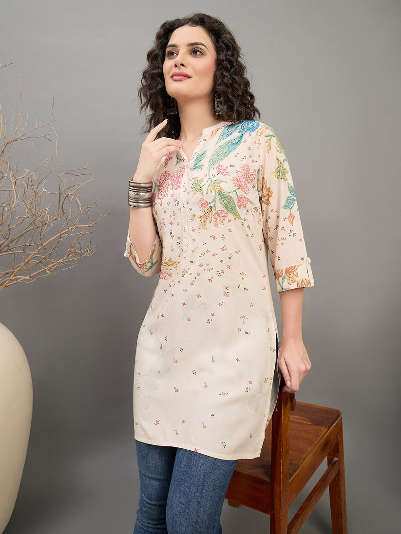 TC 1533 Printed Modal Tunic with Garden Bloom Hem Sandstone
